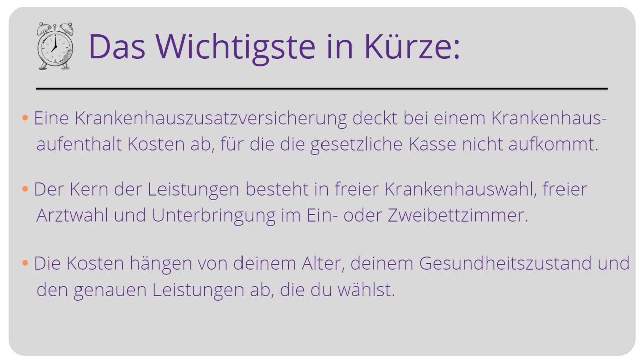 Als Patient möchte man bei einer Erkrankung nicht in das erstbeste, sondern in das beste Krankenhaus. Als Kassenpatient hat man jedoch nur einen Anspruch auf das nächstgelegene geeignete Vertragskrankenhaus der gesetzlichen Krankenversicherung (GKV). Geht der Patient in ein anderes Krankenhaus, muss er die Mehrkosten selbst zahlen. Die private Krankenhauszusatzversicherung bietet dir bei den versicherten Krankheiten eine freie Wahl des Krankenhauses.