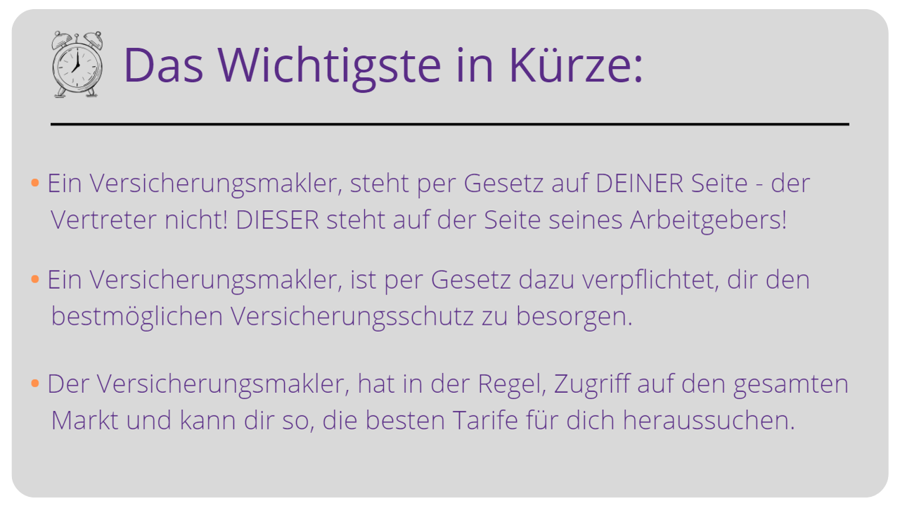 Das heißt, erteilst du einem Versicherungsmakler einen Maklerauftrag ist er dazu verpflichtet in deinem Namen zu handeln.